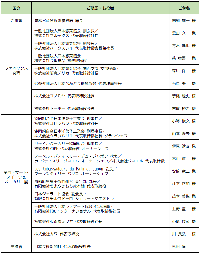 ご後援いただいている農林水産省並びに団体を代表する皆様にご登壇いただきますので、